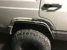 Attempted to seal the huge chunk taken out with liquid nails— total failure