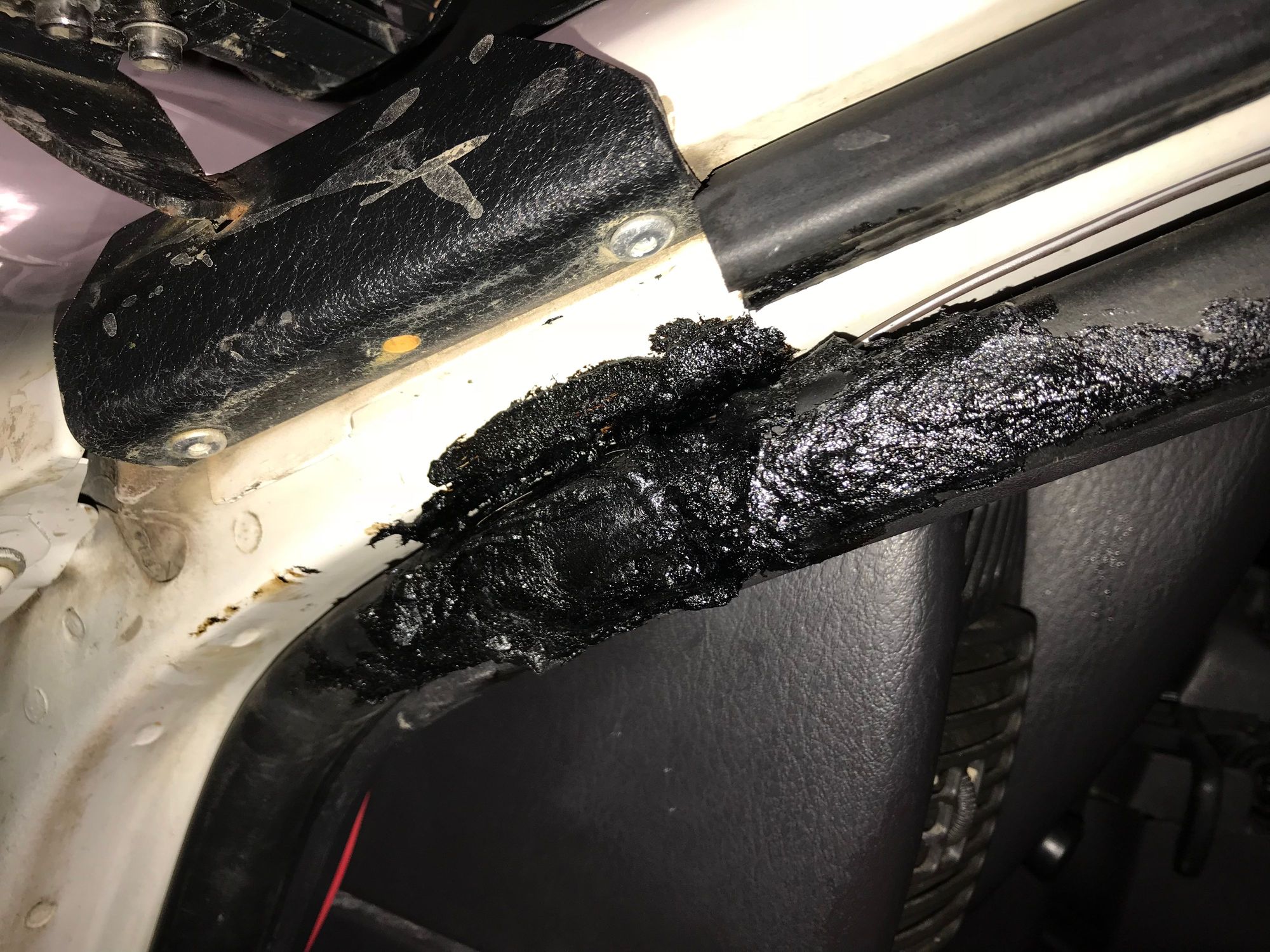 Attempted to seal the huge chunk taken out with liquid nails— total failure