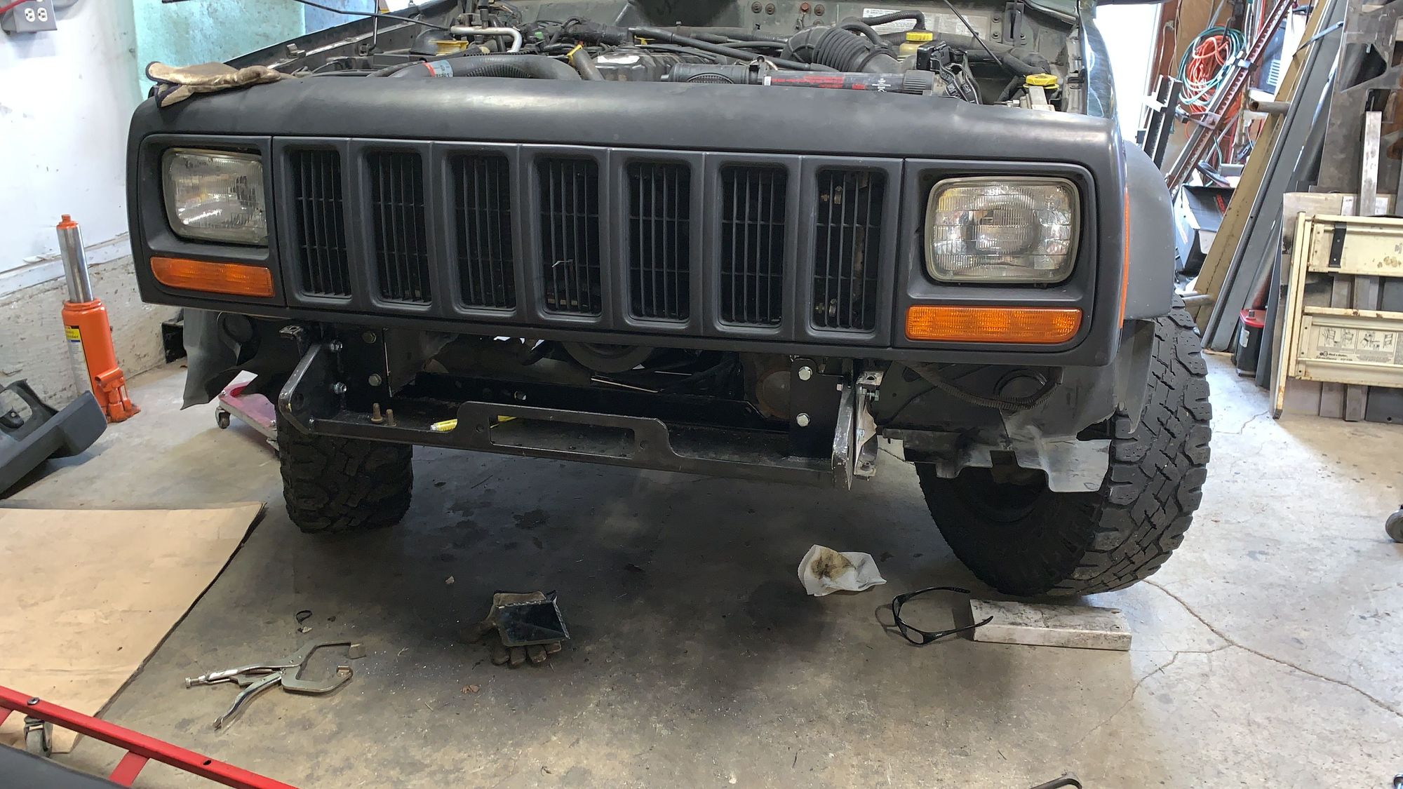 Got the mount on ok. This one was a bit of a challenge as this Jeep had been in a pretty serious hit to the front end. Took some muscle, hammer time, and determination to get the Jeep to cooperate 😂