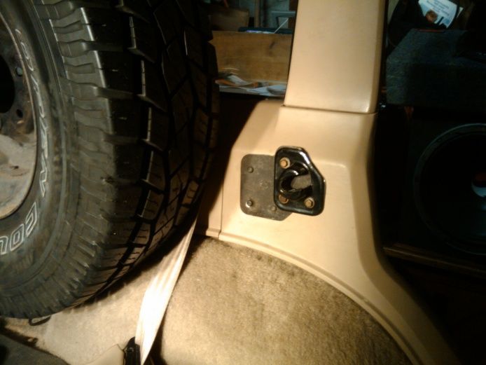 the tire rubbed on the top of the rear seat and tailgate so i made a bracket to move the seat back forward.