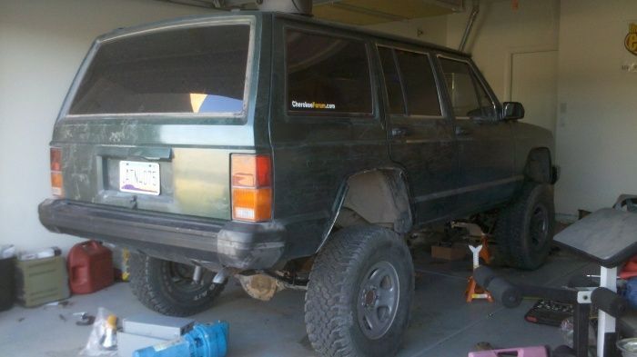 4.5 inch RC full rear leafs,'95 chevy 1500 shackles, RC Rear N 2.0 shocks, 4.5 inch front coils, 1 3/4" coil spacer, Rubicon Express Twin Tube Front shocks. RC adj. UCA's/LCA's, adj. RC track bar with drop bracket. Sets her right at 6" of lift, just waiting for my new wheels to get powdercoated, then wrapping them in 33/1050's.