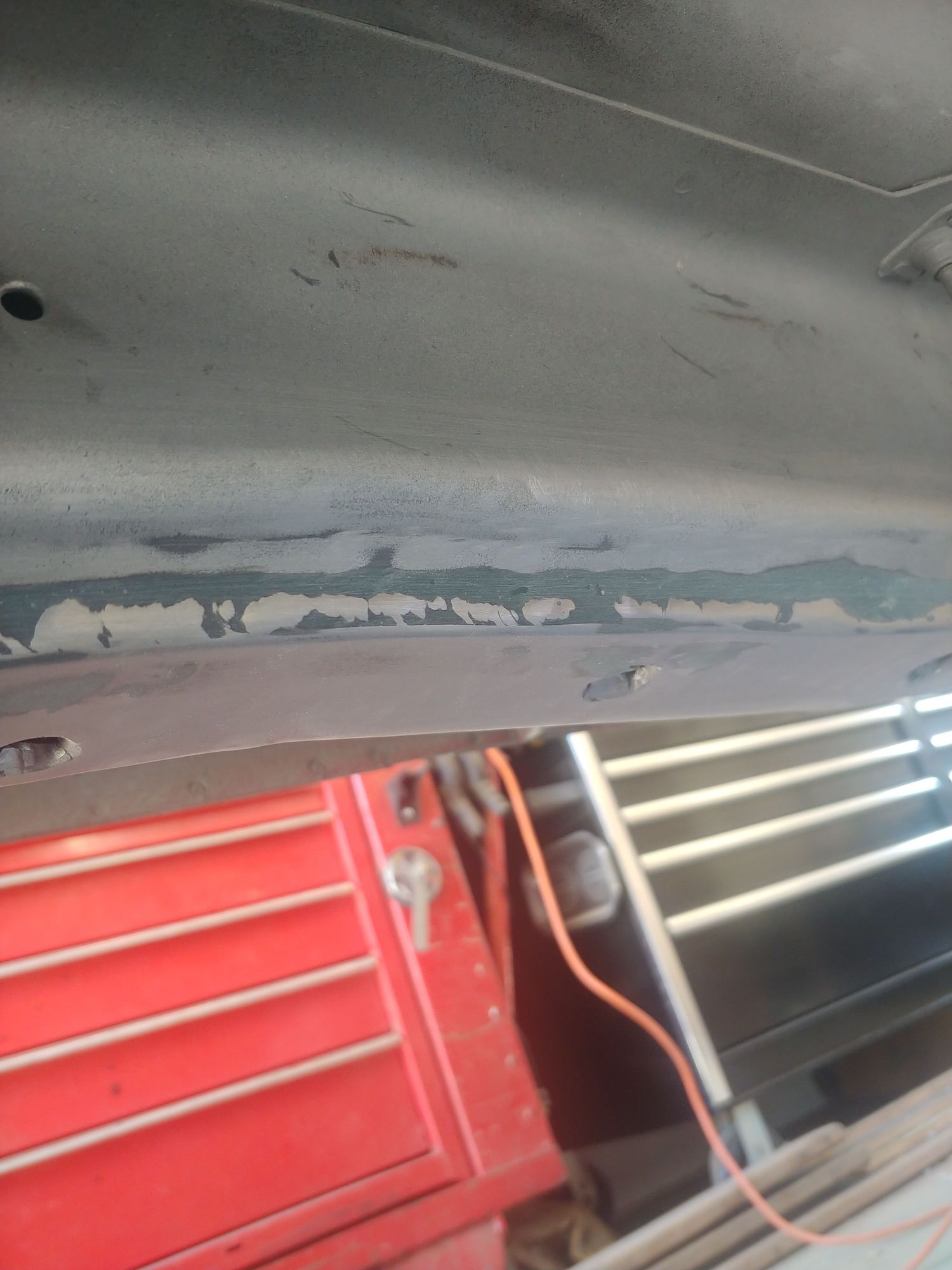 Filling the welds on the bottom side so that when it's painted it'll be hard to even tell it has frame stiffeners.