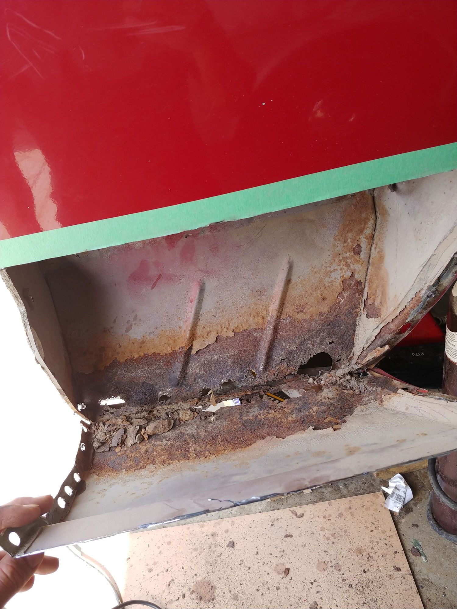 Cut out the rusted lower quarter on the right side. Thankfully the left side is ok.