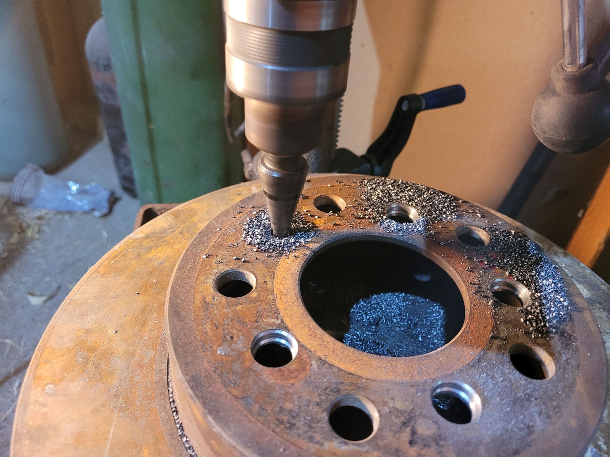 I sharpie marked the 11/16 step and just touched it then had to finish with a 5/8 bit since steps arent as thicj as rotor.