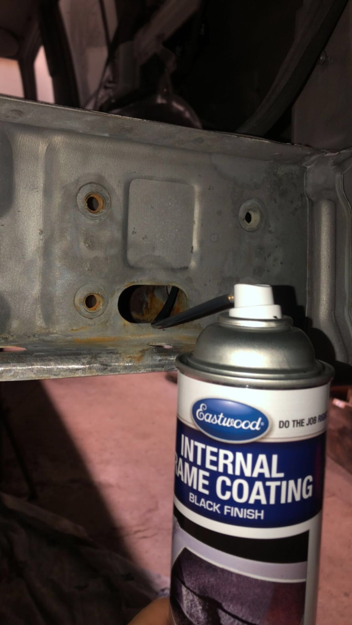 I used this stuff for inside the rear frame rails, inside the rockers and the rear shock crossmember. It has a spherical tip at the end of the tube. Worked really well.