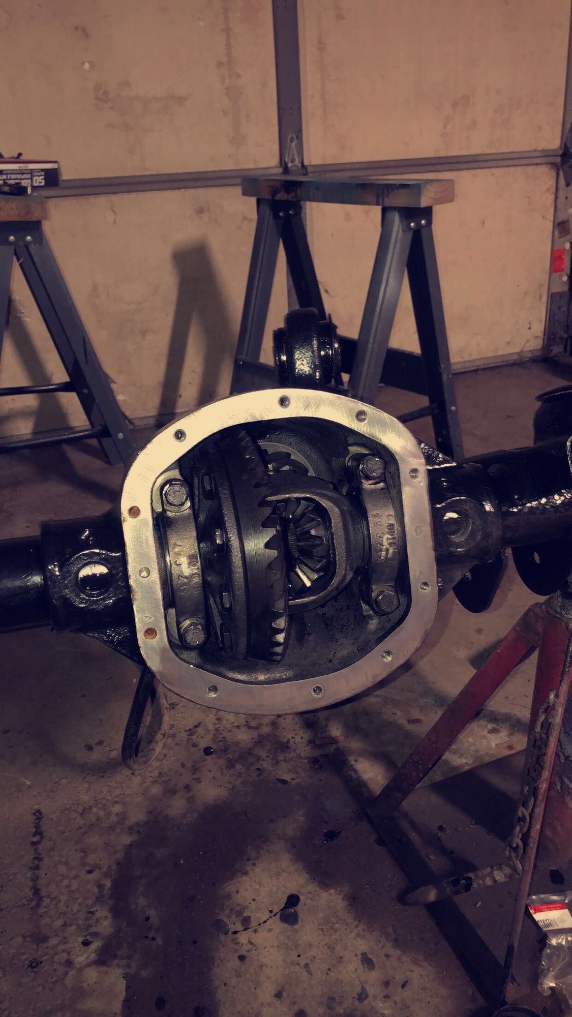 The carrier bearings are still very tight on this axle. I had to cram a rag between the ring and pinion gears to pop the carrier out.