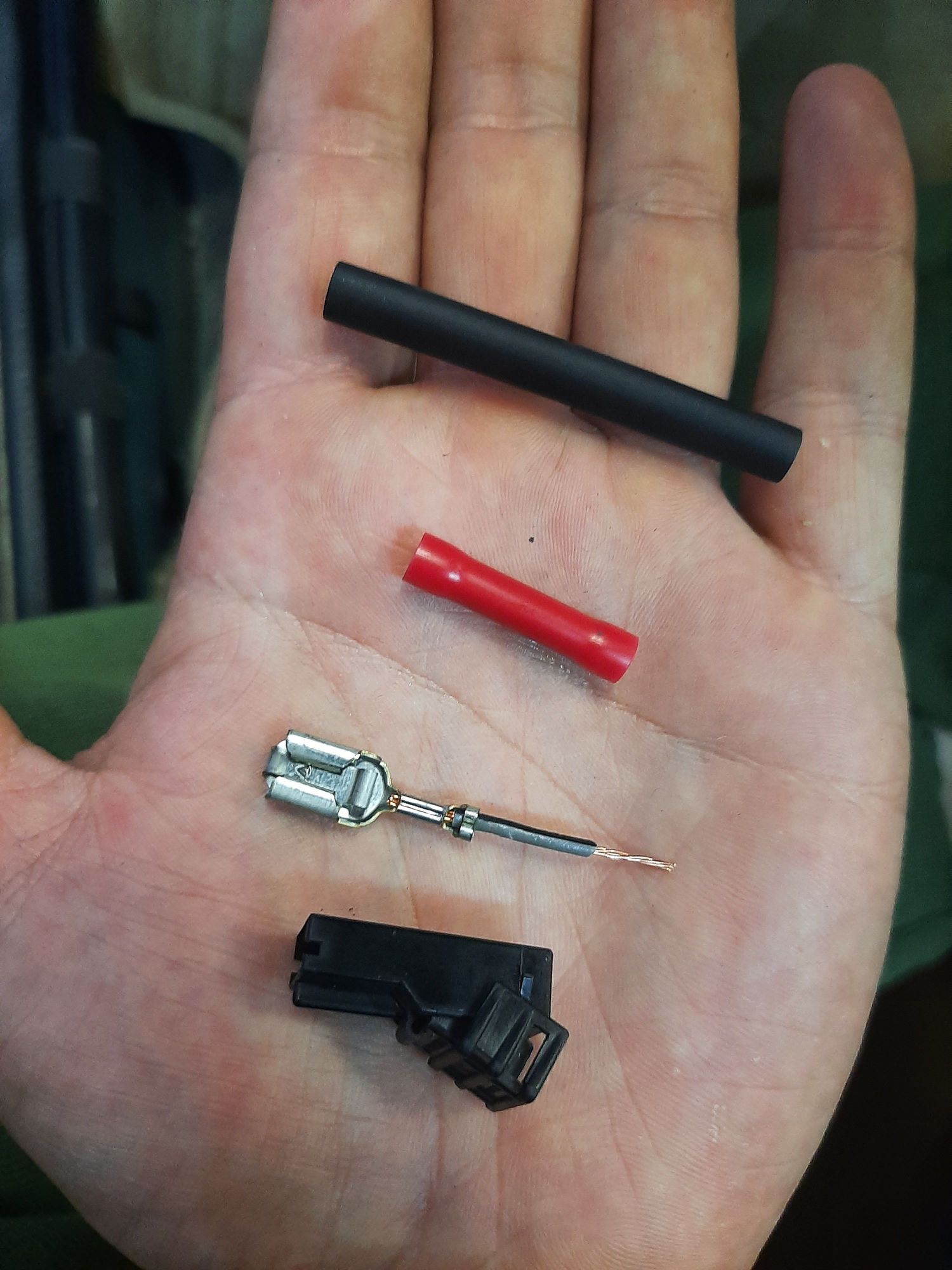 I opened up the plastic connector. I do not like using these type of connectors, but when I do I make sure to do a pulltest, check connection with a multimeter, and use heatshrink afterwards. Preferably I would like to use the ones that have the solder prepackaged inside of it.