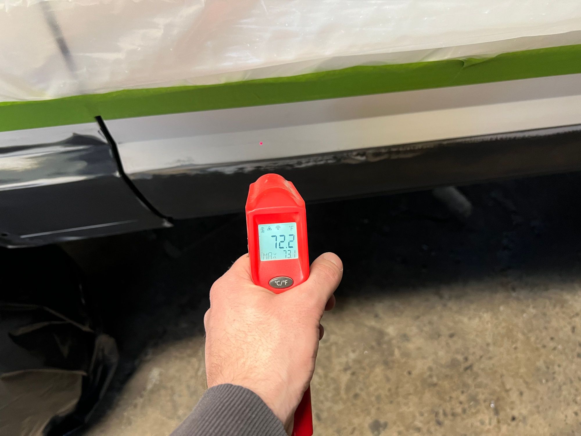 My garage unfortunately isn’t heated, making paint work in the winter a bit more difficult. I used a kerosene heater to heat up the area before I shot primer.