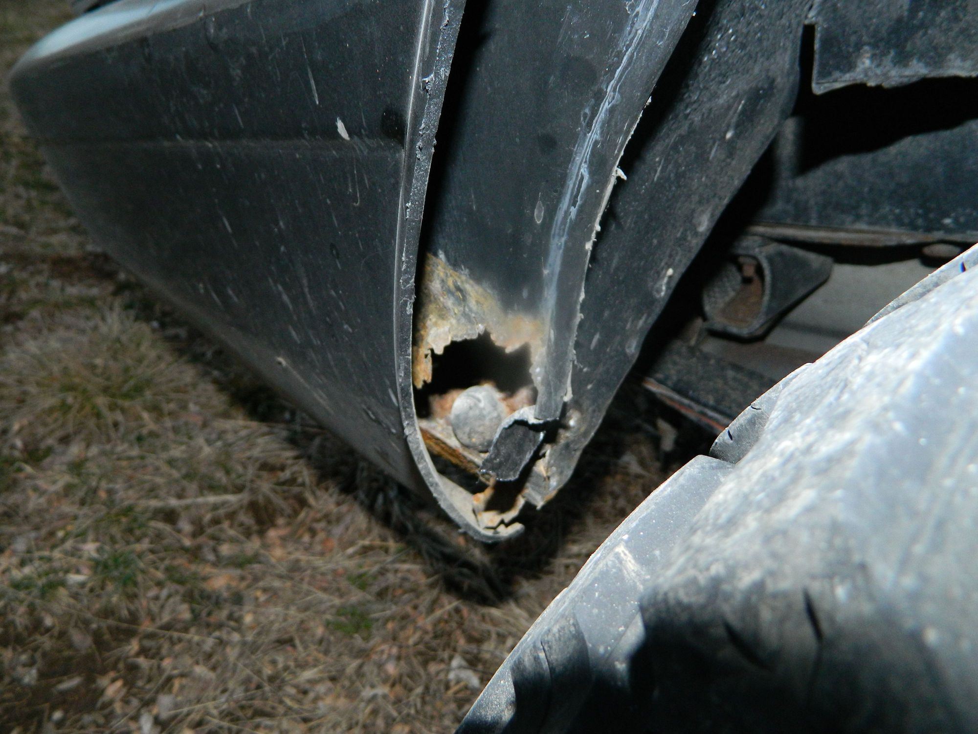 Here is my biggest rust spot on the rear quarter panel. Thought about trying to weld on a piece of sheet metal and Line-X the bottom of the body all the way around. If I buy a new panel, I'll have to paint.