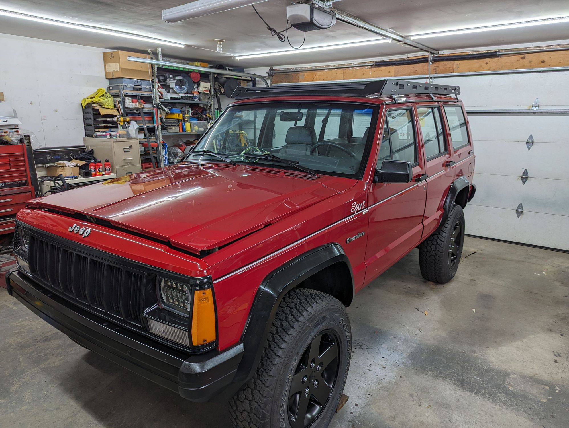 Probably spent about a full week cleaning the Jeep from sitting in the dirty garage being worked on for 4 years now. Polished it for two full days, cleaned the windows, clean the inside. Ceramic coated it, refinished the black trim with Cerakote wipes and installed the JCR roof rack. Got to say I'm pretty happy with how it looks.