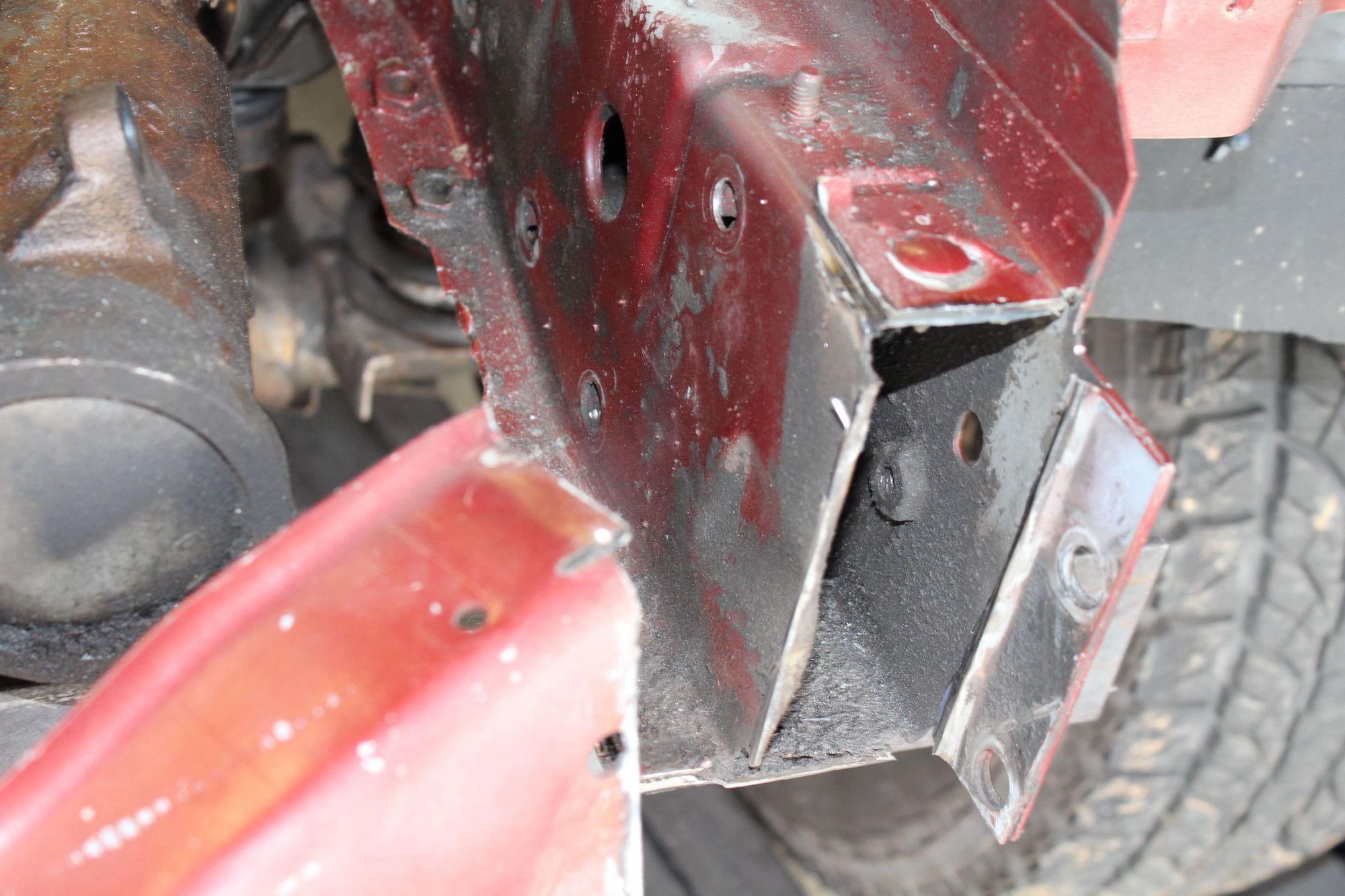 Boxing in the area around the steering box, the inside gets 3/16's and the outside of the uni-body "frame" gets 1/8 inch plate that is part of the Smittybilt bumper.