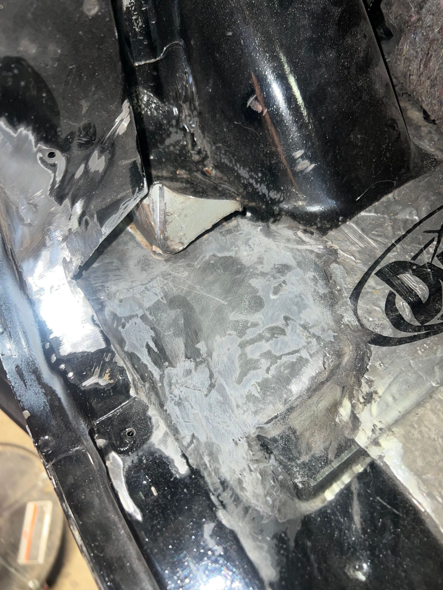 I get to a certain point where filling tiny pinholes and grinding the welds back down gets redundant. Once I stop seeing light through the pores, I fill them with epoxy. I did this on the floor pan as well. Maybe one day I’ll be a good enough welder to never need any filler!