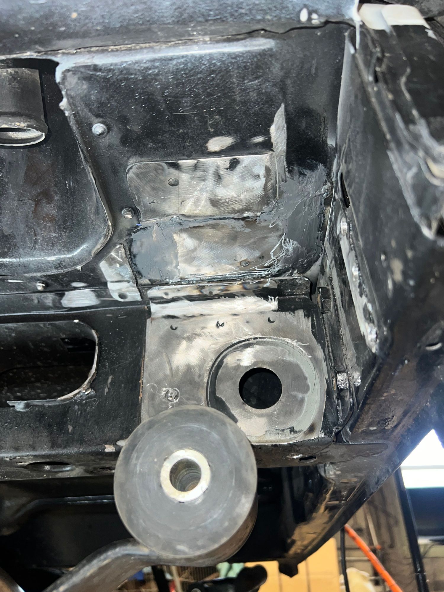 Bottom view with a skim coat of epoxy. Once this cures, it’ll be sanded and I’ll shoot primer over all the bare metal.