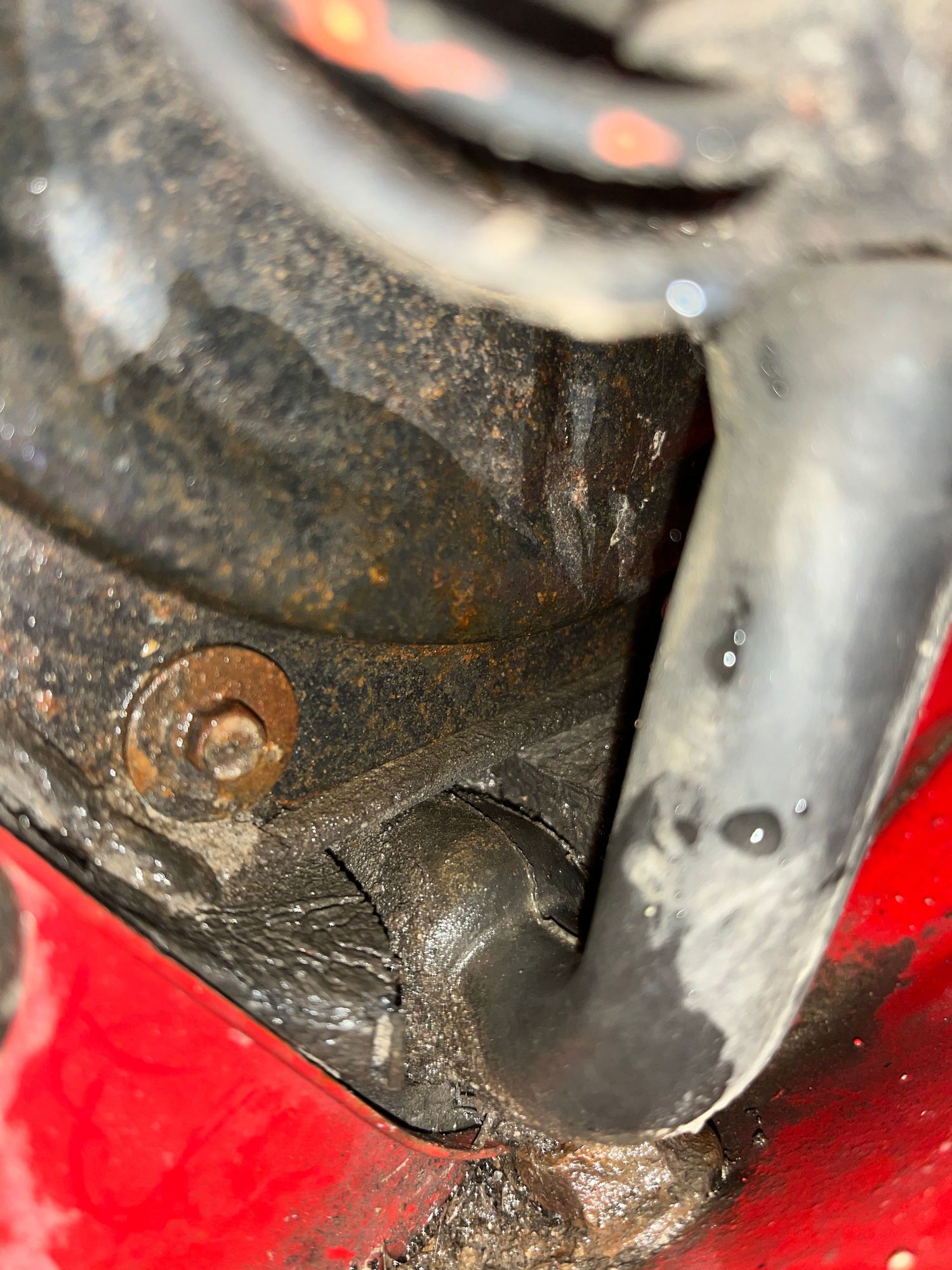 This is at the bottom of the blower motor housing. I tried covering most of this area with black silicone RTV sealant.