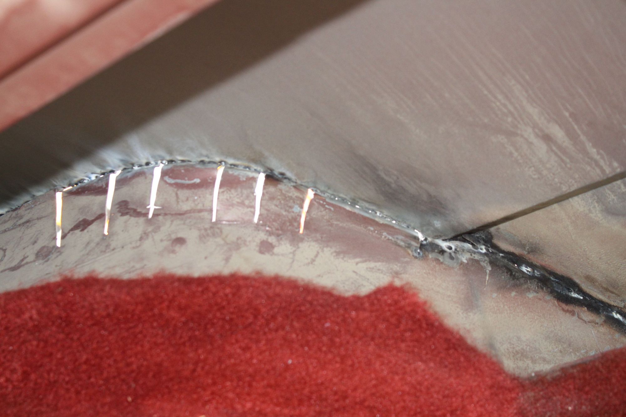 Looking from the inside looking at the top of the fender and the slits I made to allow for shaping to fit the outer skin.