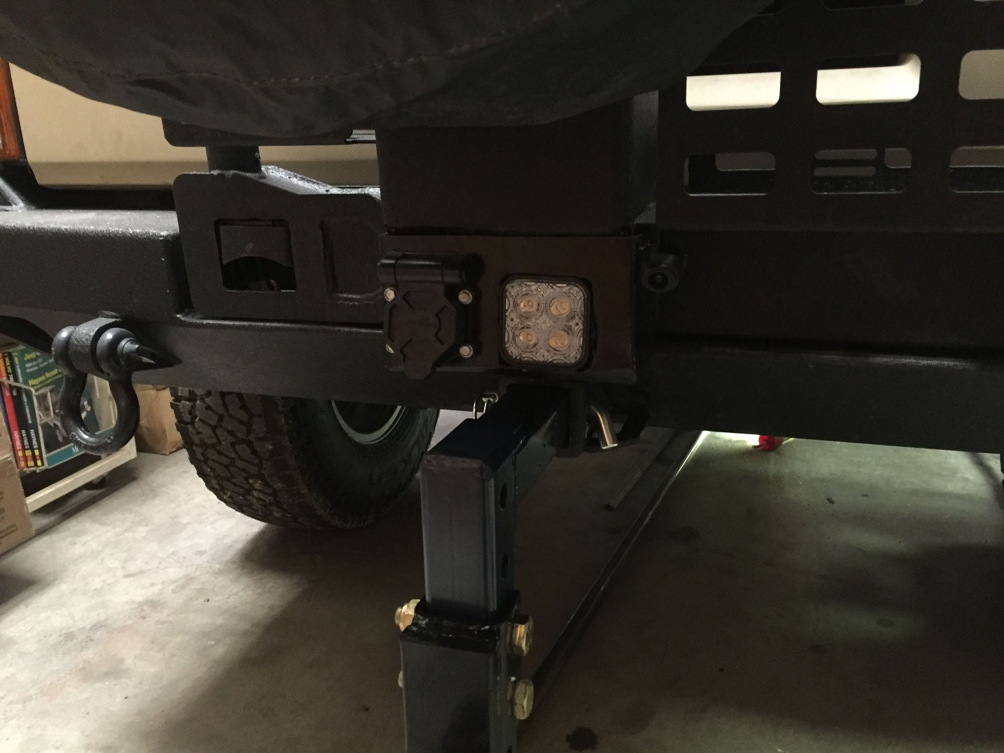 Made a box to hold a reverse light, trailer hookup and the back up camera.