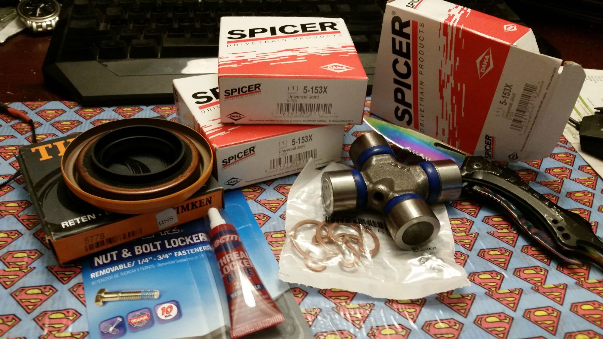 New 5778 Timken pinion seal and 3 new 5-153X Spicer u joints.