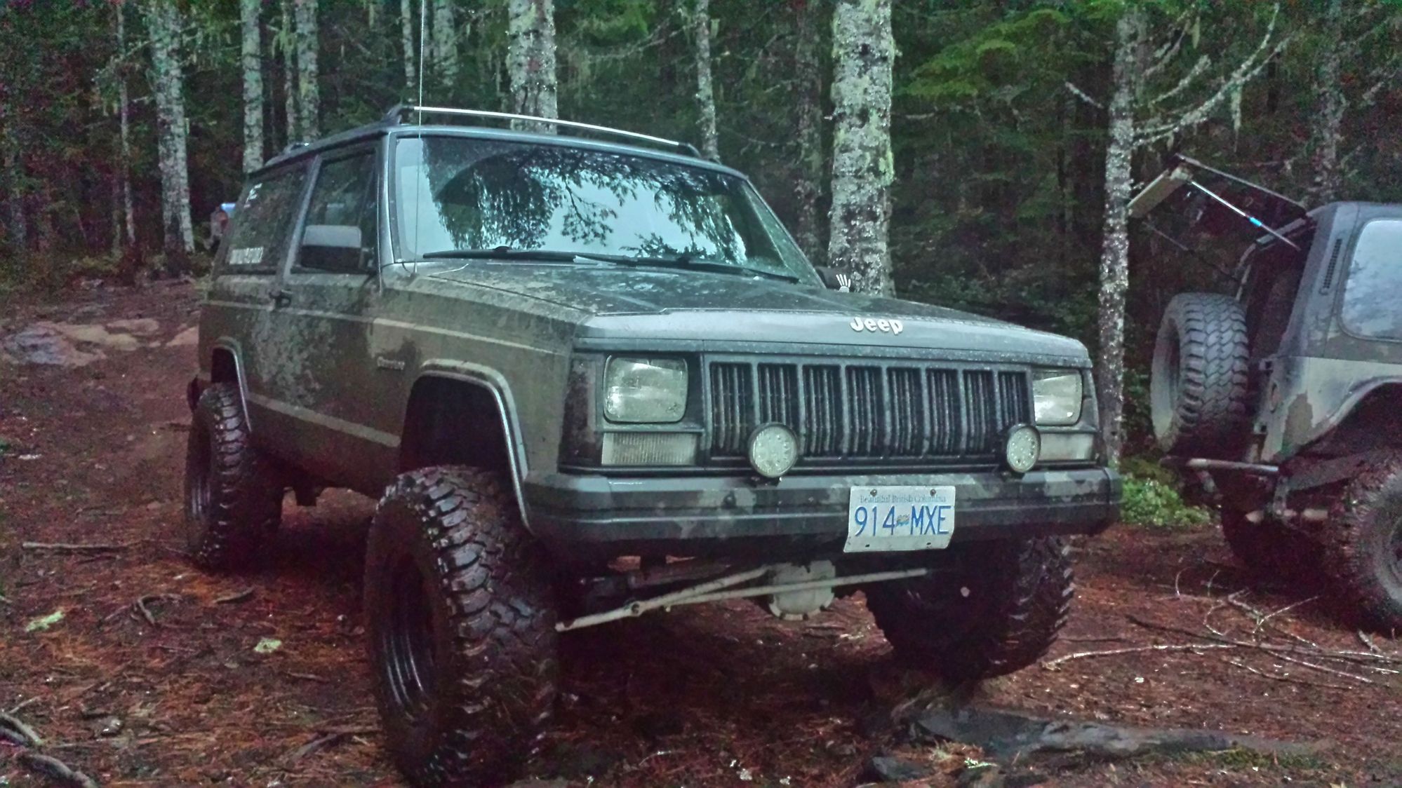 Looks bigger than it is in this pic. Still has 31s, and the 3" lift, and the rear had settled down some to about 4" lift. Had a lot of fun on this trail, leading us to a nice lake to have a fire at.
