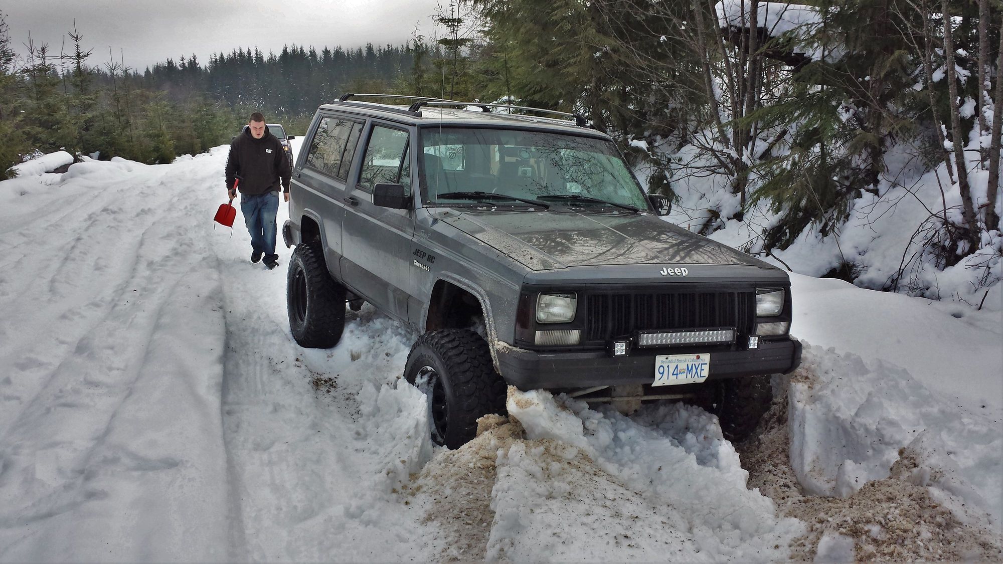 The snow was a bit much haha, old snow that was super icy and thick. Rut sucked me off the road. My buddy bringing the shovel to help get my stuck ass out!
