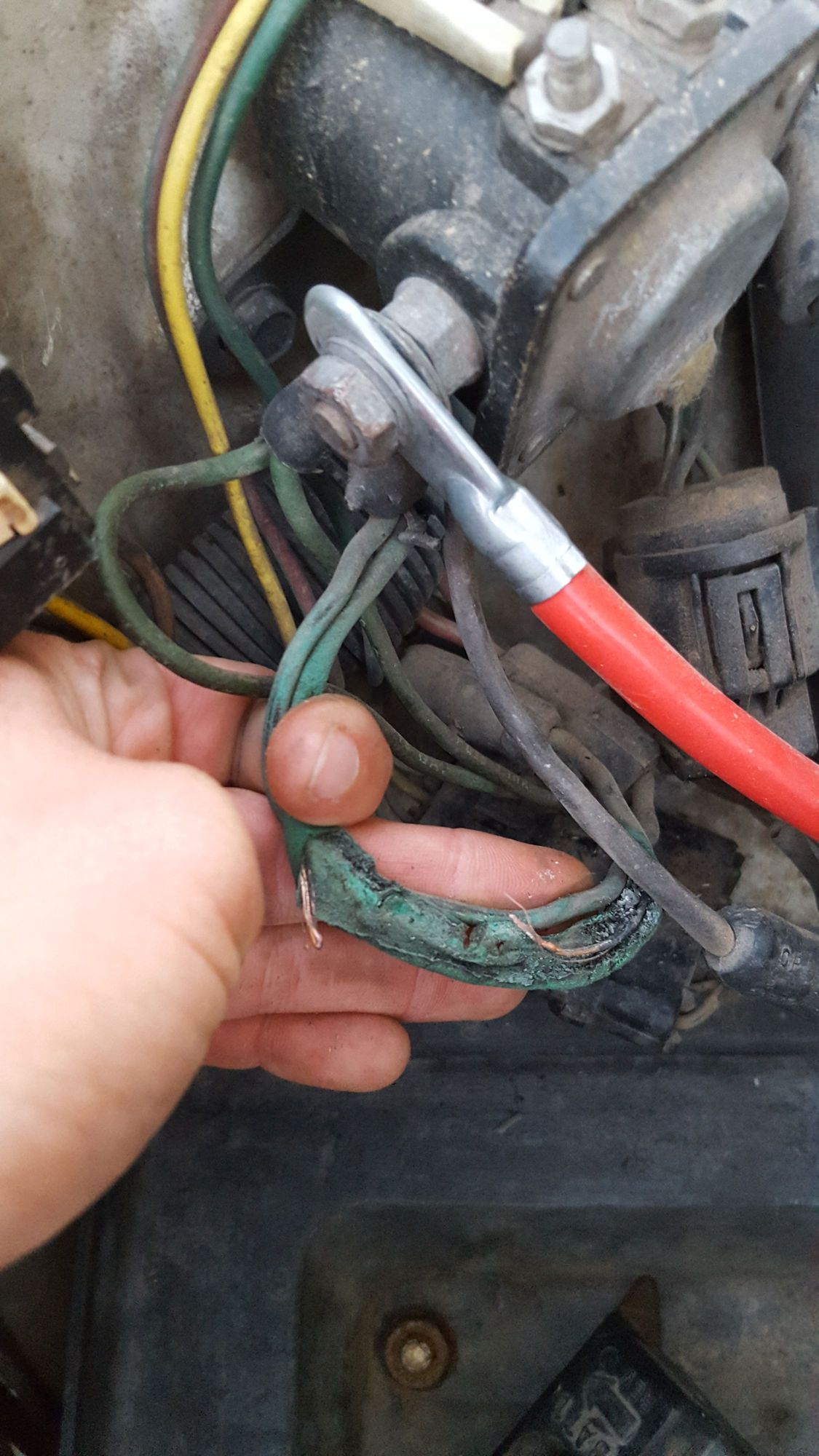 initial wires that melted: 2 stranded green wires that connect to a ring terminal to power, other ends then split off each into 1 red and 1 red white (so 2 red and 2 red white total, with 2 green)