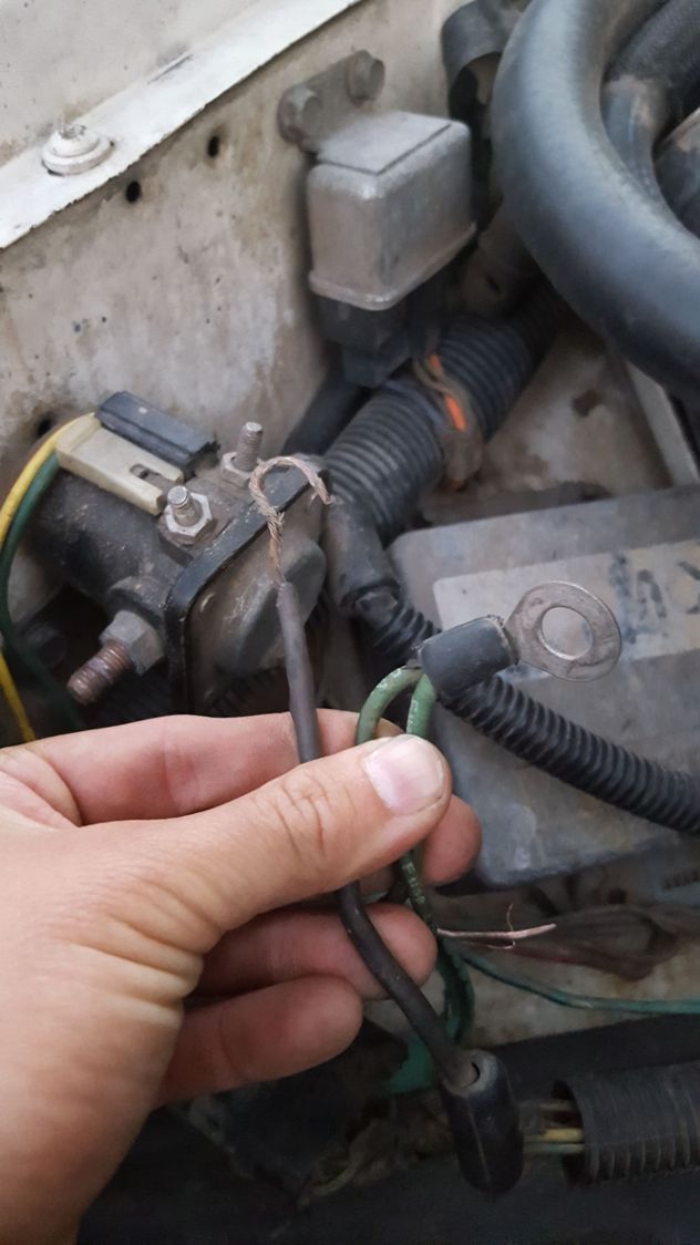 noticed this whack attachment of this black wire instead of a ring terminal. possibly rubbed and exposed wires on other wire?