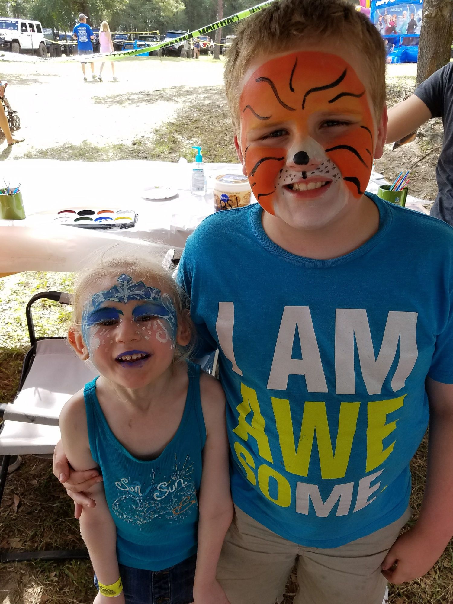 Izzie and Dyllon wanted their faces painted. Jordan didn't want any part of it.