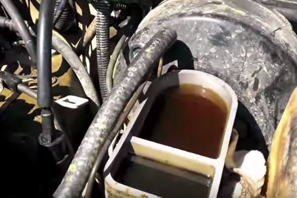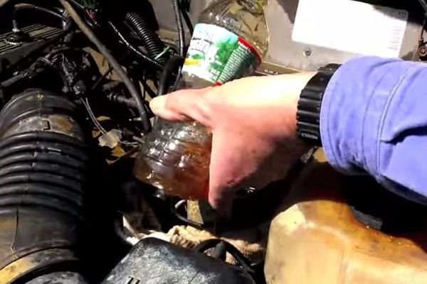 Figure 3. Using a bottle to catch all the fluid is the usual method for this task.