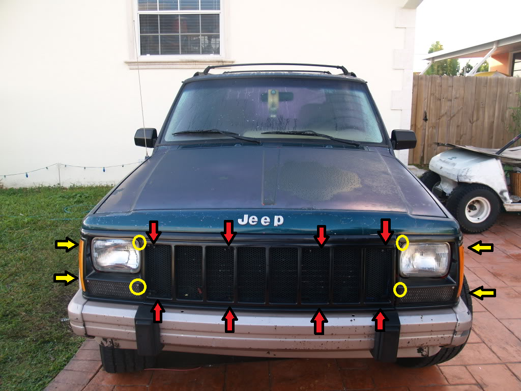 - Depending on the year and model, the headlight bezels have two to four Phillips screws securing them in place. The 1997 to 2001 models have two screws at the top of the bezel and plastic retaining clips at the bottom. The 1996 and earlier models have two screws on the front side of the bezel and two additional screws through the amber marker lights. With the screws removed, the bezels can be taken out and set aside.