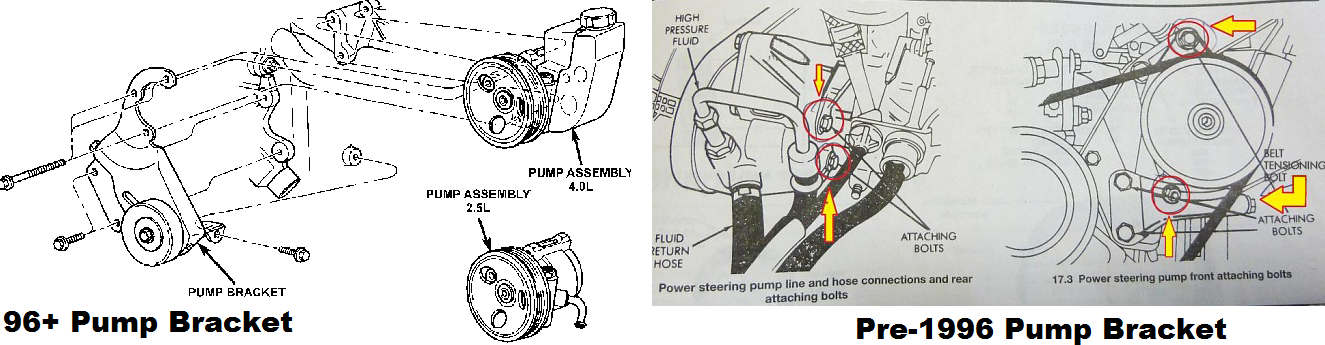 - Attach power steering pump bracket to water pump. Torque to approximately 35 ft/lbs.