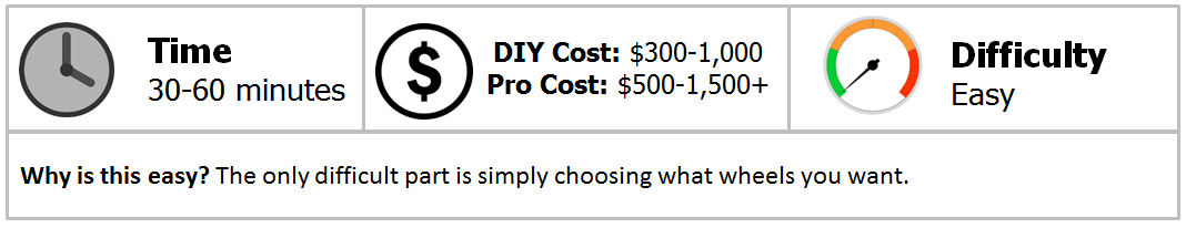 Do you simply want to purchase a new set of wheels to replace yours, which are damaged or looking rough? Do you want to upgrade the looks of your ride, but don't care about performance? Do you want a set of lightweight wheels for enhanced performance, or maybe a tough set of wheels for off-road adventures? All wheels are designed with different goals in mind, so this must be your first determination. While some have multiple uses, these are just some of the considerations you will face when shopping for wheels. The second most important consideration is how much money you want to spend. Wheel prices can run the gauntlet from just a few hundred dollars to several thousand, depending on the material the wheels are made out of and the quality. Determining purpose and budget will help you narrow down the options that are available to you.