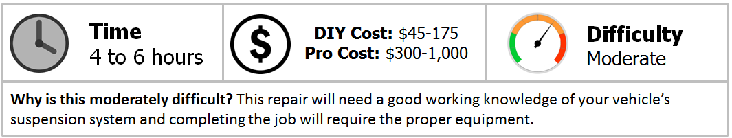 Keep in mind that a job of this magnitude should be done by someone who is confident in their mechanical abilities. It's not that it is extremely difficult, but it will require the proper equipment, firm knowledge of your vehicle's suspension system, and following the correct steps so you don't end up going down the wrong path.