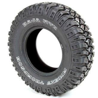 The Mickey Thompson's are good all purpose trail and beach tires. Out of all of the tires on this list, these have the best road manners when it comes to a quieter and smoother ride. These won't perform as well as a Swamper in the mud or on the rocks, but for milder trails, they'll hold their own very well. Rock to mud comparison, these tires will be more at home on the rocks. The tighter tread pattern means that in sloppy mud they'll be able to get caked easier. They're also relatively light compared to other mud terrains, which helps both your gas mileage and off-road performance by not making your truck work harder to turn them. Recommended if you want good mud tires, while maintaining good road manners.